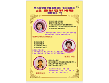 張素勤主席為中醫藥發展基金資助項目-全民大健康中醫藥膳同行,主講「創新藥食同源傳承中醫藥膳」